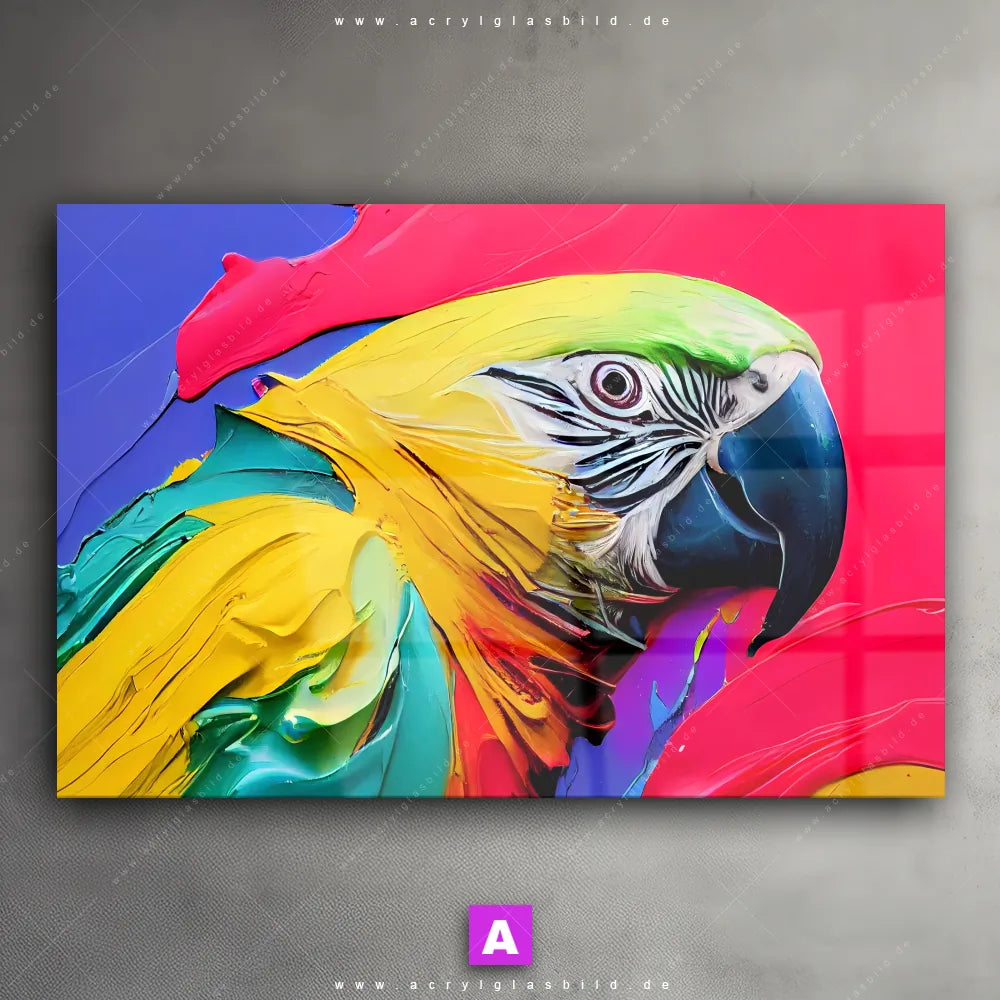 Hallo, du Meister der Dekoration oder Königin des Stils, bist du bereit, deine Räume, wie Arzt - Praxis, Bar - Gastronomie, Büro - Kanzlei, Wohnzimmer - Schlafzimmer, in einen kreativen Kunstsalon zu verwandeln? Dann haben wir das perfekte Wandkunstwerk für dich: Unser Acrylglasbild Federn Papagei im Querformat wird im Handumdrehen jeden Raum auf ein neues Level heben!