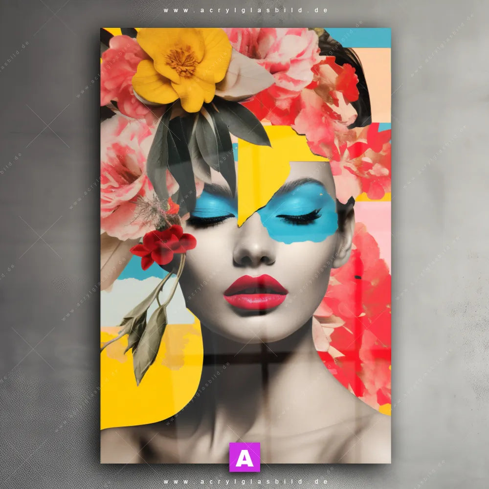 Acrylglasbild | Florales Frauenporträt - Fiona | Hochformat