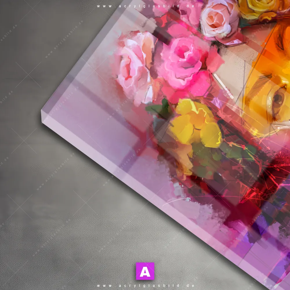 Bist du es leid, ständig auf deine tristen Wände zu starren und dir vorzustellen, wie viel lebendiger sie sein könnten? Wir haben die ideale Lösung für dich: Unser Acrylglasbild Florales Frauenporträt - Rosalie im Quadrat-Format haucht deinen Räumen sofort neues Leben ein!