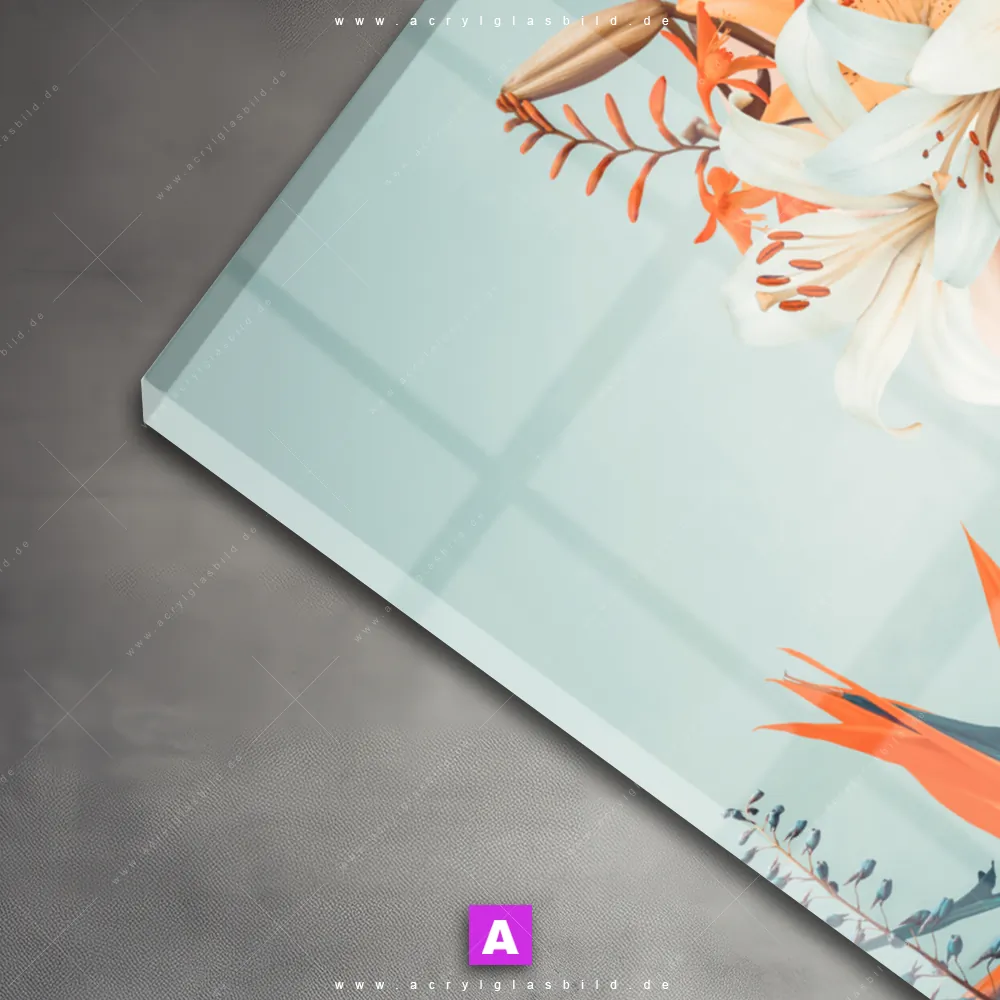 UV-Direktdruck | 5mm starke, transparente Acrylglasplatte | von hinten bedruckt | durchscheinendes Motiv | vollflächig mit weißer Schicht hinterlegt | bemerkenswerte Farbbrillanz | hohe Schärfe | erstaunliche Tiefenwirkung