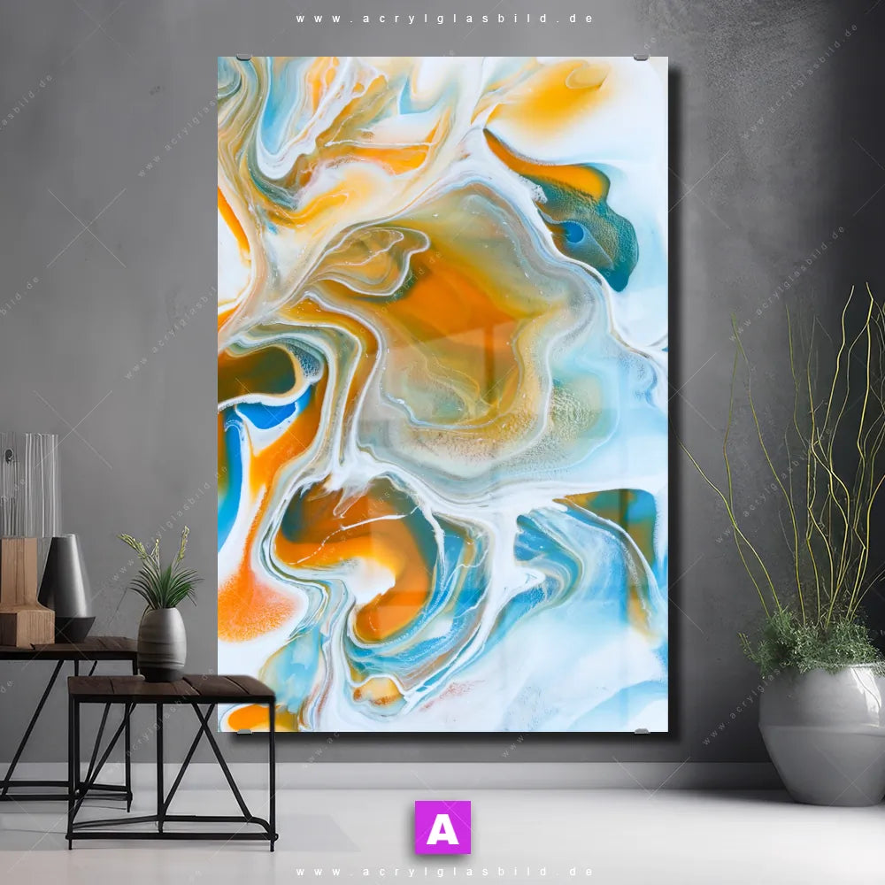 <b>Produktart:</b> Acrylglasbild | Glasbild | Wandbild aus Kunstglas | <b> Motiv:</b> Fluid Art Lagune | <b> Bildausrichtung:</b> Hochformat | <b> Max. Motiv-Größe:</b> 150cm breit | 230cm hoch | <b> Verfügbare Formate: </b> Quadrat, Querformat, Hochformat, Panorama, Schmal, Rund | <b> Kategorie:</b> Muster - Texturen | <b> Farben:</b> Blau, Weiss, Beige, Ocker, Orange, Hellblau | <b> Kunstformen:</b> Fotografie, Kunst - Malerei | <b> Kunststile:</b> Abstrakt, Modern Art