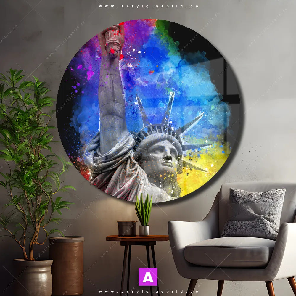 Acrylglasbild | Freiheitsstatue Pop Art No.2 | Rund