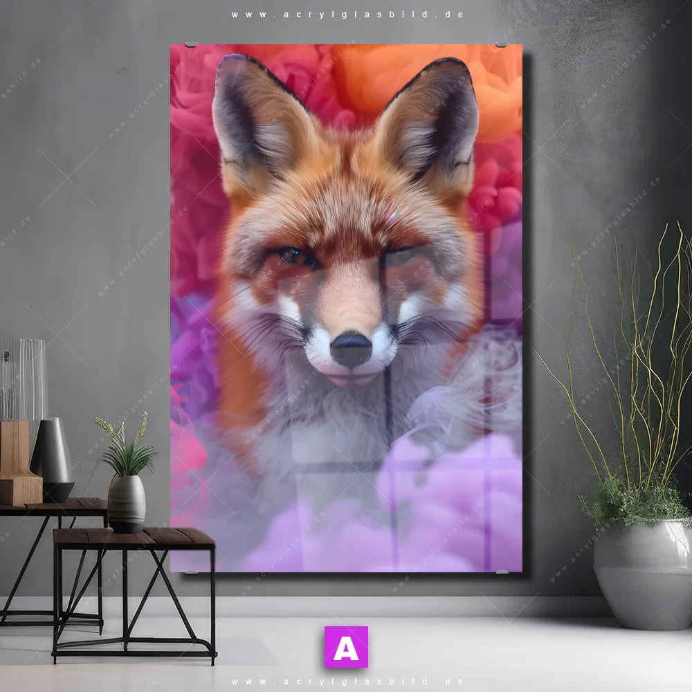 Hallo, auf Wiedersehen langweilige Wände! Gib deinem Raum ein stilvolles Upgrade mit unserem Acrylglasbild Fuchs in Farbnebel im Hochformat, das nicht nur Flur - Eingangsbereich, Wohnzimmer - Schlafzimmer, Büro - Kanzlei, sondern auch jeden anderen Raum im Handumdrehen auf ein neues Niveau hebt!