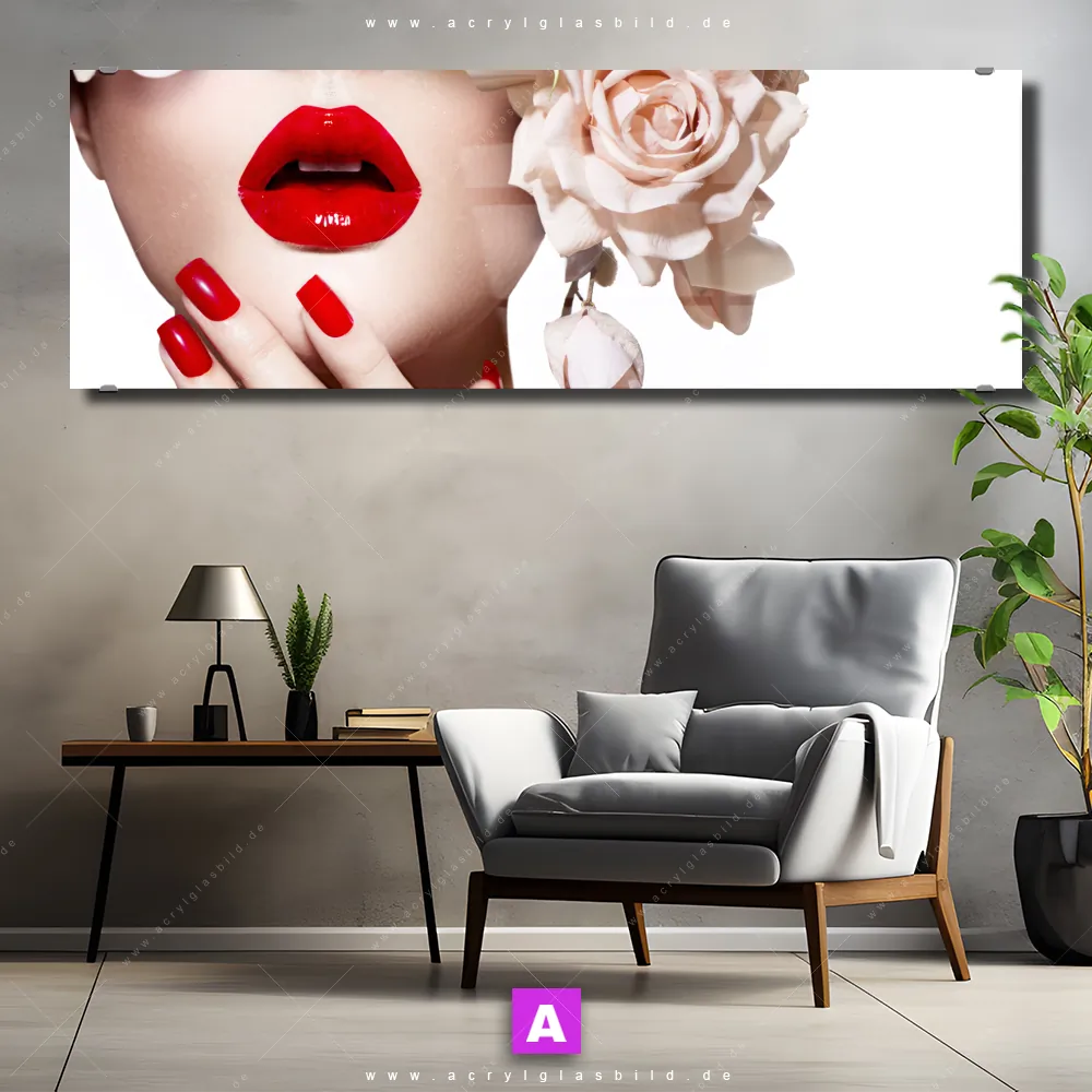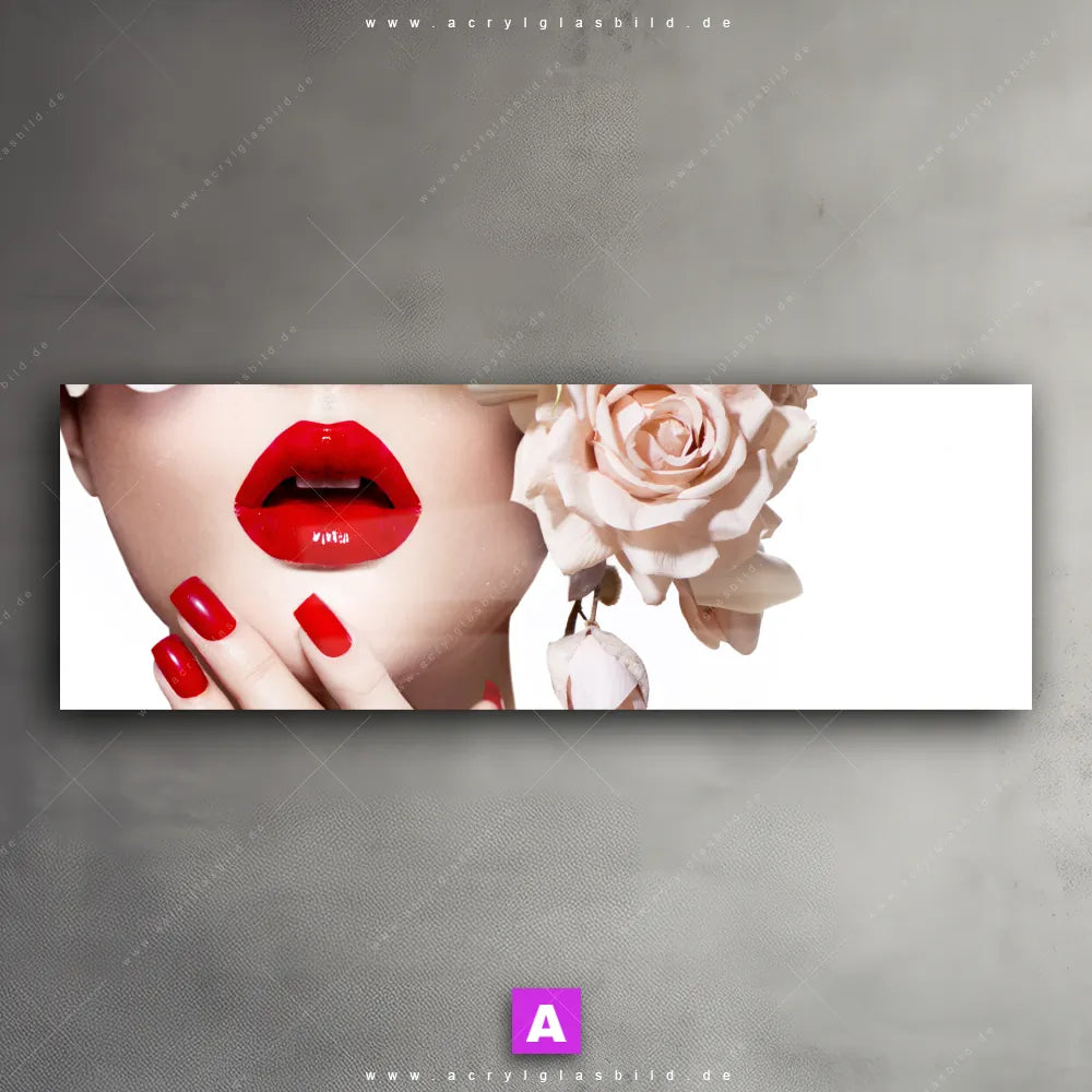 Fehlt dir die Inspiration beim Anblick deiner Wände, sodass selbst das Zählen der Wandfarbtropfen aufregender erscheint? Keine Sorge, wir haben das perfekte Kunstwerk für dich! Mit unserem Acrylglasbild Gesicht & Rosen im Panorama-Format verleihst du deinem Raum den dringend benötigten Wow-Faktor. Lass deine Wände mit unserem verführerische Lippen Acrylglasbild zum Star werden!