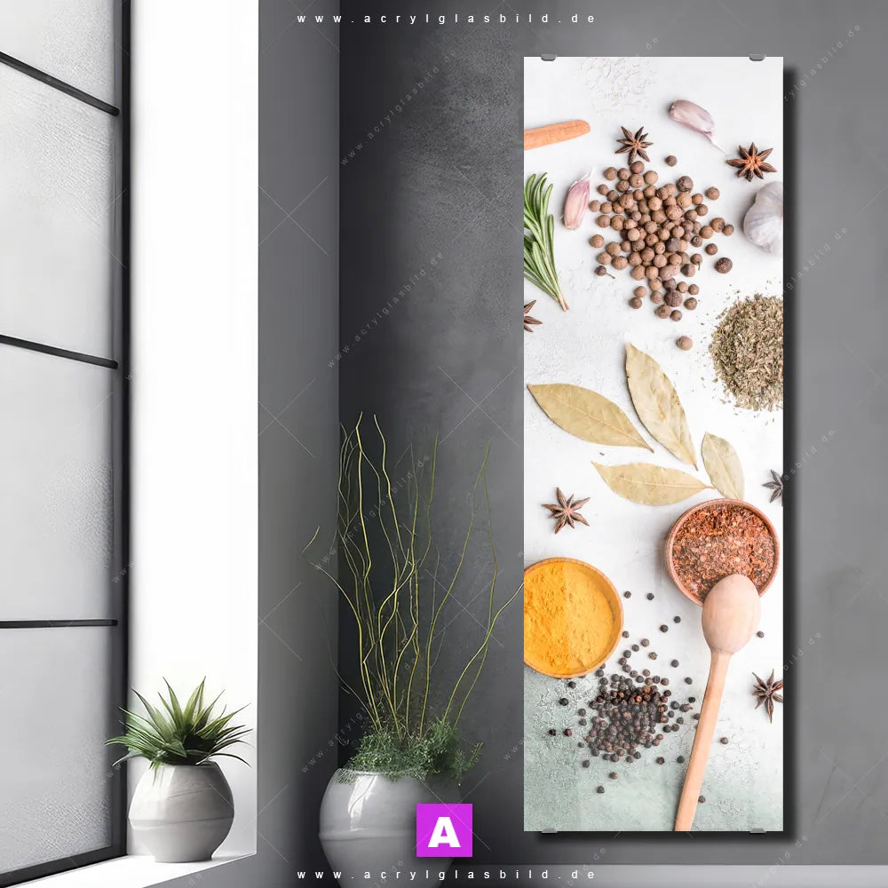 Langweilige Wände sind wie ein trockenes Toastbrot ohne Butter und Marmelade - einfach fade und nicht sehr appetitlich. Aber zum Glück haben wir das perfekte Acrylglasbild für dich: Mit unserem Kunstwerk Gewürze auf hellem Untergrund im Format Schmal wird deine Wand zur Leinwand und dein Raum zum Blickfang.