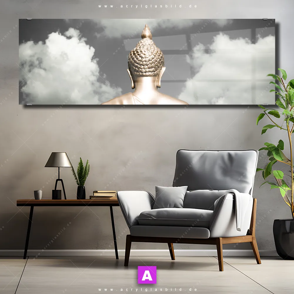 Acrylglasbild | Goldene Buddha Statue | Panorama