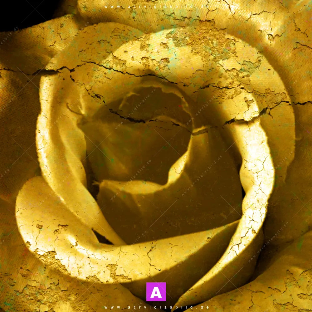 Vergiss also langweilige weiße Wände und entscheide dich für das Acrylglasbild Rose in gold mit schwarzem Hintergrund, gestaltet als Digitale Kunst, das deinem Raum Charakter verleiht und dich jeden Tag aufs Neue inspiriert. Mit diesem Blumen - Botanik Acrylglasbild wird deine Wand zur Kunst und du zum Kunstliebhaber.