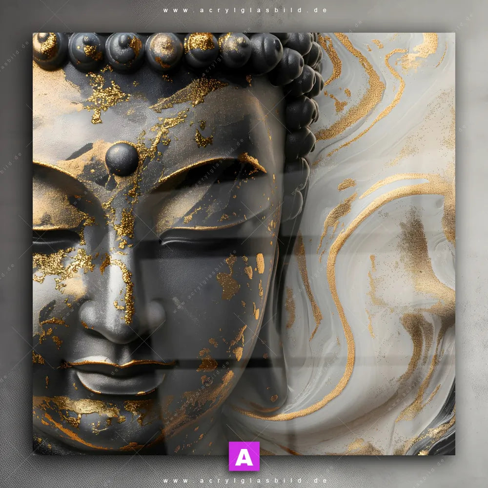 <b>Produktart:</b> Acrylglasbild | Glasbild | Wandbild aus Kunstglas | <b> Motiv:</b> Goldener Buddha Fluid Art | <b> Bildausrichtung:</b> Quadrat | <b> Max. Motiv-Größe:</b> 300cm breit | 200cm hoch | <b> Verfügbare Formate: </b> Quadrat, Querformat, Hochformat, Panorama, Schmal, Rund | <b> Kategorie:</b> Buddha - Feng Shui | <b> Farben:</b> Gold, Schwarz, Weiss | <b> Kunstformen:</b> Kunst - Malerei, Digitale Kunst | <b> Kunststile:</b> Abstrakt, Schwarz - Weiss