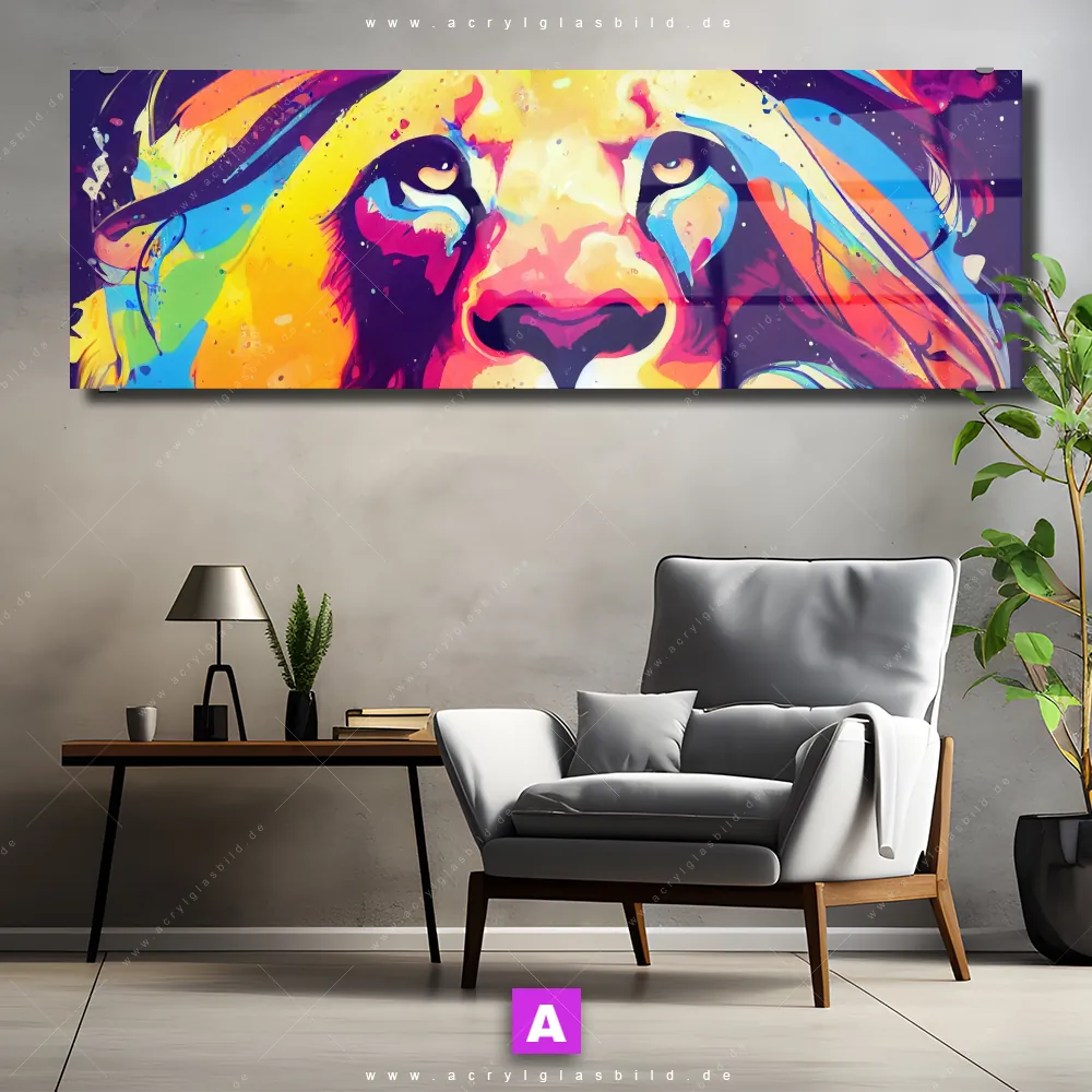 Also, worauf wartest du noch? Verwandle deine tristen Wände in Bar - Gastronomie, Wohnzimmer - Schlafzimmer, Flur - Eingangsbereich in inspirierende Kunstwerke aus der Kategorie Tierwelt und bestelle jetzt das Acrylglasbild farbenprächtiger Löwenkopf!
