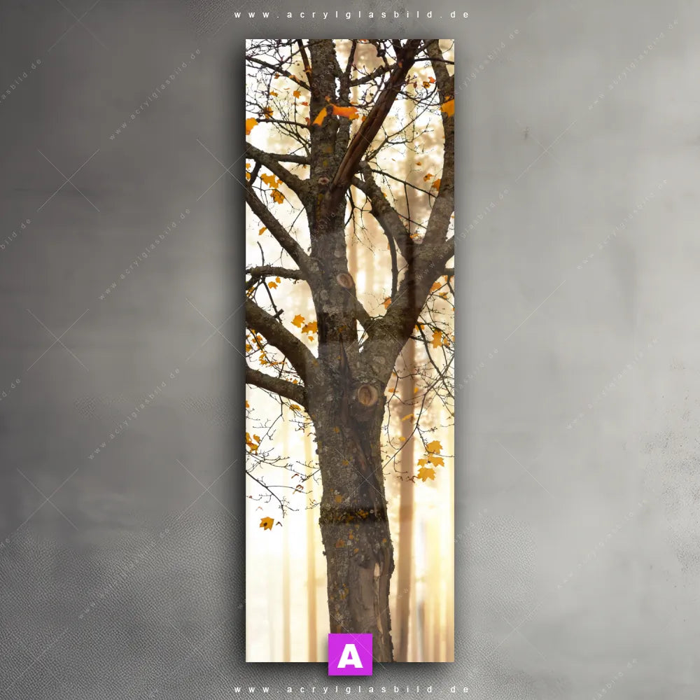 Die einzigartigen Farben in Braun, Orange machen das Acrylglasbild Baum mit Herbstblättern mit Wald, Landschaft, Bäume, Natur, Baum, Buche, Ruhe, Stille zu einem echten Hingucker. Egal ob deine Einrichtung minimalistisch, modern oder doch eher wild und ausgefallen ist - unser Acrylglasbild Morgennebel im Herbst im Retro - Vintage Stil passt immer, auch in .