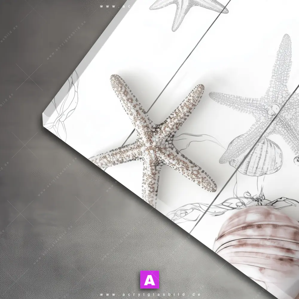 Das Beste daran ist, dass unser Acrylglasbild Maritime Seestern Muschel Kunst im Stil Retro - Vintage perfekt zu jedem Einrichtungsstil passt. Gestaltet als Digitale Kunst, Kunst - Malerei, bringt es nicht nur deine Wand, sondern auch dein Herz zum Strahlen.
