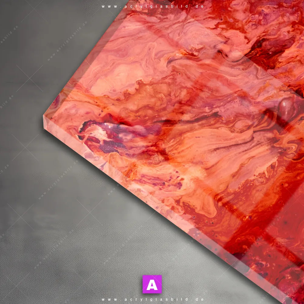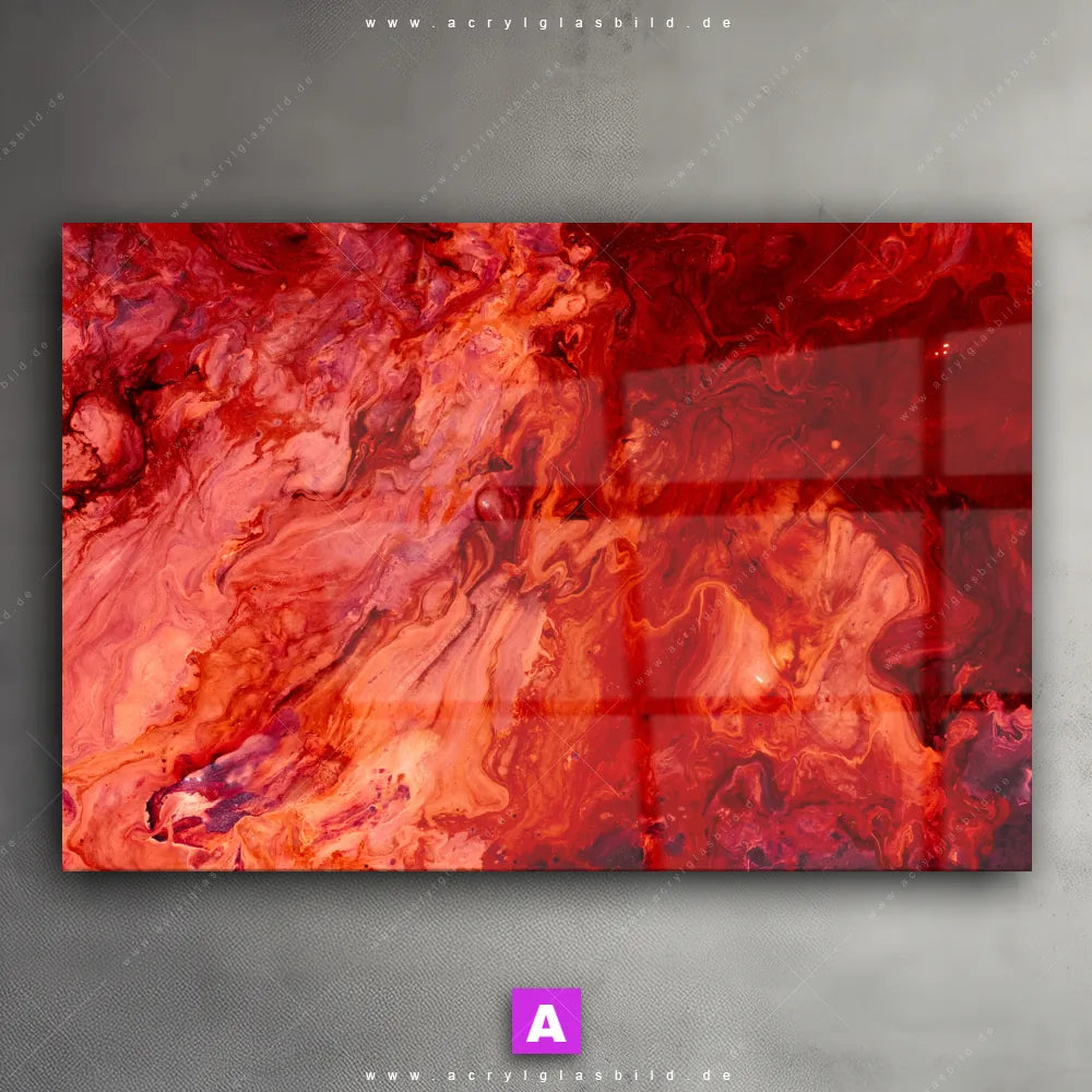 <b>Produktart:</b> Acrylglasbild | Glasbild | Wandbild aus Kunstglas | <b> Motiv:</b> Liquid Marmor rot | <b> Bildausrichtung:</b> Querformat | <b> Max. Motiv-Größe:</b> 320cm breit | 180cm hoch | <b> Verfügbare Formate: </b> Quadrat, Querformat, Hochformat, Panorama, Schmal, Rund | <b> Kategorie:</b> Muster - Texturen | <b> Farben:</b> Rot | <b> Kunstformen:</b> Fotografie | <b> Kunststile:</b> Abstrakt, Modern Art