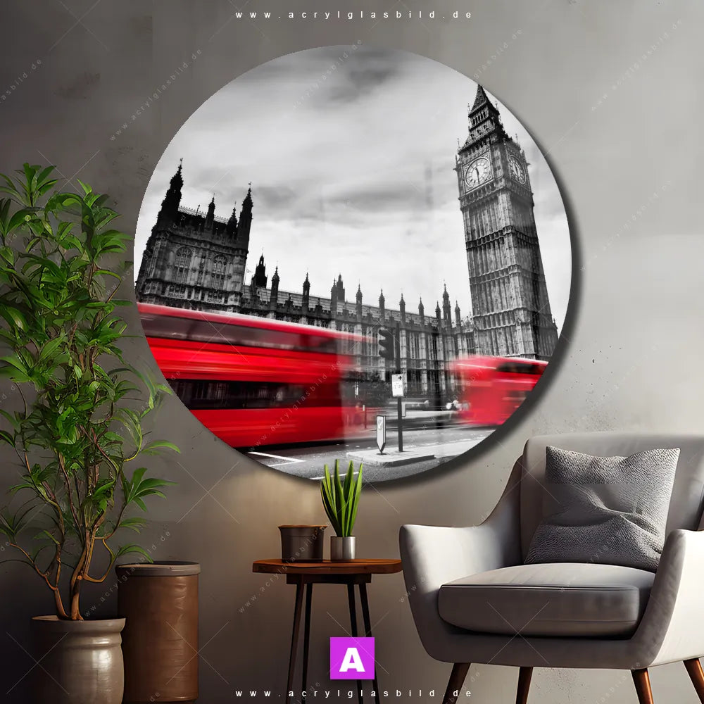 Hey du! Bist du es auch leid, auf langweilige, weiße Wände in deinem Raum zu starren und dich zu fragen, ob das der Sinn des Lebens ist? Unser Acrylglasbild mit dem Titel London in Bewegung im Format Rund verwandelt deine Wand in ein Kunstwerk und macht deinen Raum zum absoluten Hingucker.