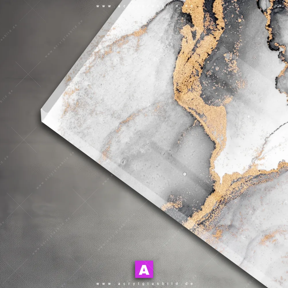 Das Motiv Luxury Abstract Fluid Art No. 3 wird im UV-Direktdruck in den Farben Gold, Weiss auf die Rückseite einer 5mm starken, transparenten Acrylglasplatte gedruckt. Das durchscheinende Motiv Marmorierung weiß-grau-gold im Abstrakt, Modern Art Stil wird anschließend vollflächig mit einer weißen Schicht hinterlegt. Das Muster - Texturen Acrylglasbild | Rund erhält so eine bemerkenswerte Farbbrillanz, hohe Schärfe und erstaunliche Tiefenwirkung.
