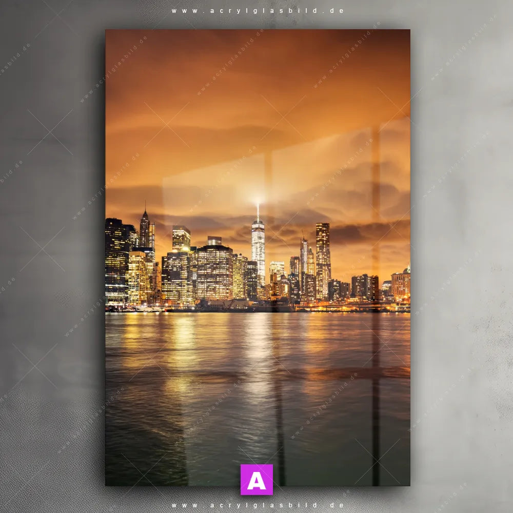 Hallo, auf Wiedersehen langweilige Wände! Gib deinem Raum ein stilvolles Upgrade mit unserem Acrylglasbild Manhatten bei Sonnenuntergang im Hochformat, das nicht nur Wohnzimmer - Schlafzimmer, Büro - Kanzlei, sondern auch jeden anderen Raum im Handumdrehen auf ein neues Niveau hebt!