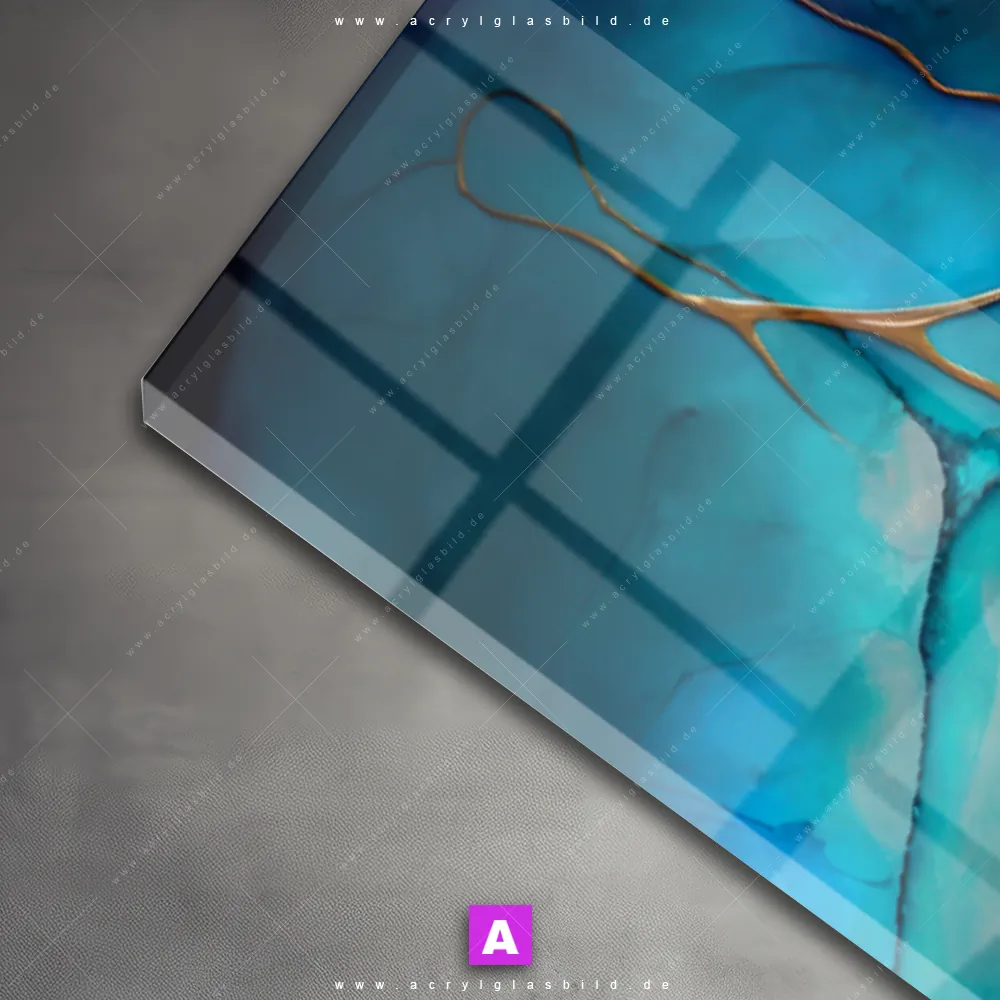 Das Motiv Marmorstruktur Lavendel wird im UV-Direktdruck in den Farben Lila, Blau, Gold, Türkis auf die Rückseite einer 5mm starken, transparenten Acrylglasplatte gedruckt. Das durchscheinende Motiv Goldener Lavendel in Marmoroptik im Abstrakt, Modern Art Stil wird anschließend vollflächig mit einer weißen Schicht hinterlegt. Das Muster - Texturen Acrylglasbild | Panorama erhält so eine bemerkenswerte Farbbrillanz, hohe Schärfe und erstaunliche Tiefenwirkung.