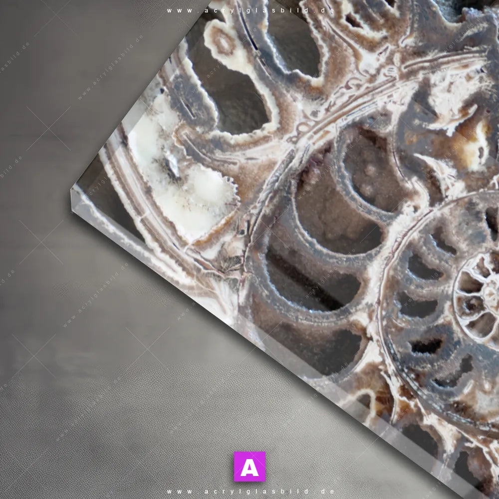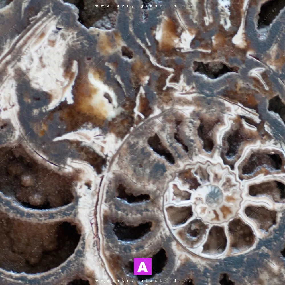 <b>Produktart:</b> Acrylglasbild | Glasbild | Wandbild aus Kunstglas | <b> Motiv:</b> Muschel Fossil No. 3 | <b> Bildausrichtung:</b> Querformat | <b> Max. Motiv-Größe:</b> 180cm breit | 135cm hoch | <b> Verfügbare Formate: </b> Quadrat, Querformat, Hochformat, Panorama, Schmal, Rund | <b> Kategorie:</b> Muster - Texturen | <b> Farben:</b> Gold, Braun, Beige, Schwarz | <b> Kunstformen:</b> Fotografie | <b> Kunststile:</b> Abstrakt, Modern Art, Geometrisch