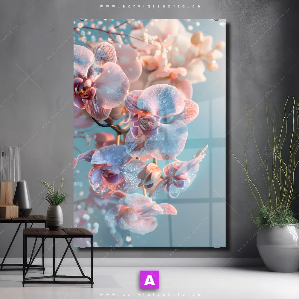 Hallo, auf Wiedersehen langweilige Wände! Gib deinem Raum ein stilvolles Upgrade mit unserem Acrylglasbild Orchideenblüten in Pastell im Hochformat, das nicht nur Arzt - Praxis, Flur - Eingangsbereich, Wohnzimmer - Schlafzimmer, sondern auch jeden anderen Raum im Handumdrehen auf ein neues Niveau hebt!