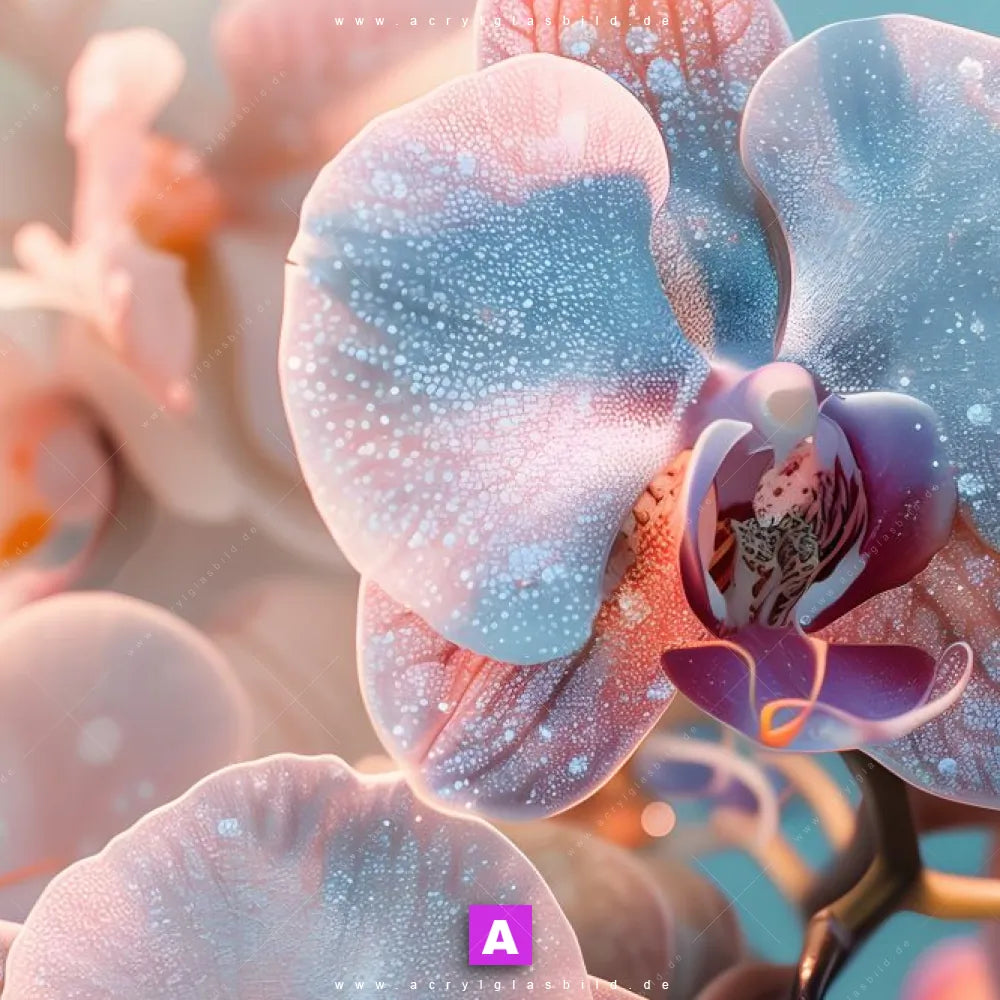 <b>Produktart:</b> Acrylglasbild | Glasbild | Wandbild aus Kunstglas | <b> Motiv:</b> Orchideenblüten in Pastell | <b> Bildausrichtung:</b> Hochformat | <b> Max. Motiv-Größe:</b> 300cm breit | 450cm hoch | <b> Verfügbare Formate: </b> Quadrat, Querformat, Hochformat, Panorama, Schmal, Rund | <b> Kategorie:</b> Blumen - Botanik | <b> Farben:</b> Lila, Rosa, Hellblau | <b> Kunstformen:</b> Digitale Kunst, Fotografie | <b> Kunststile:</b> Floral, Natürlich - Realistisch