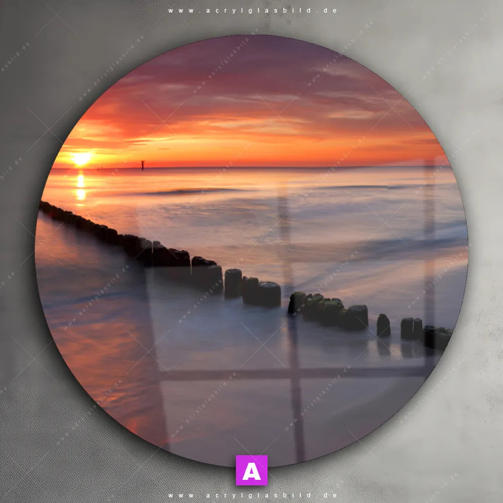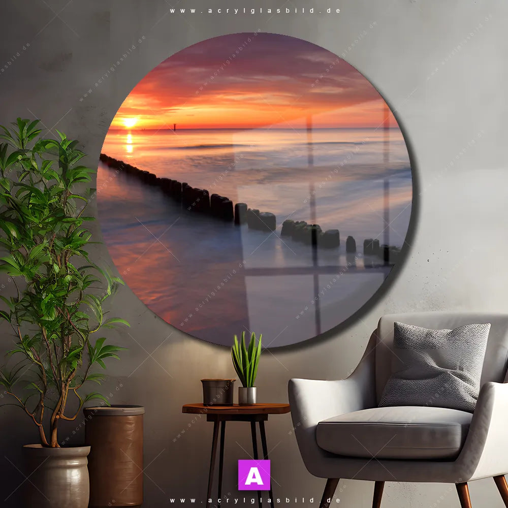 Hey du! Bist du es auch leid, auf langweilige, weiße Wände in deinem Raum zu starren und dich zu fragen, ob das der Sinn des Lebens ist? Unser Acrylglasbild mit dem Titel Ostsee Sonnenuntergang im Format Rund verwandelt deine Wand in ein Kunstwerk und macht deinen Raum zum absoluten Hingucker.
