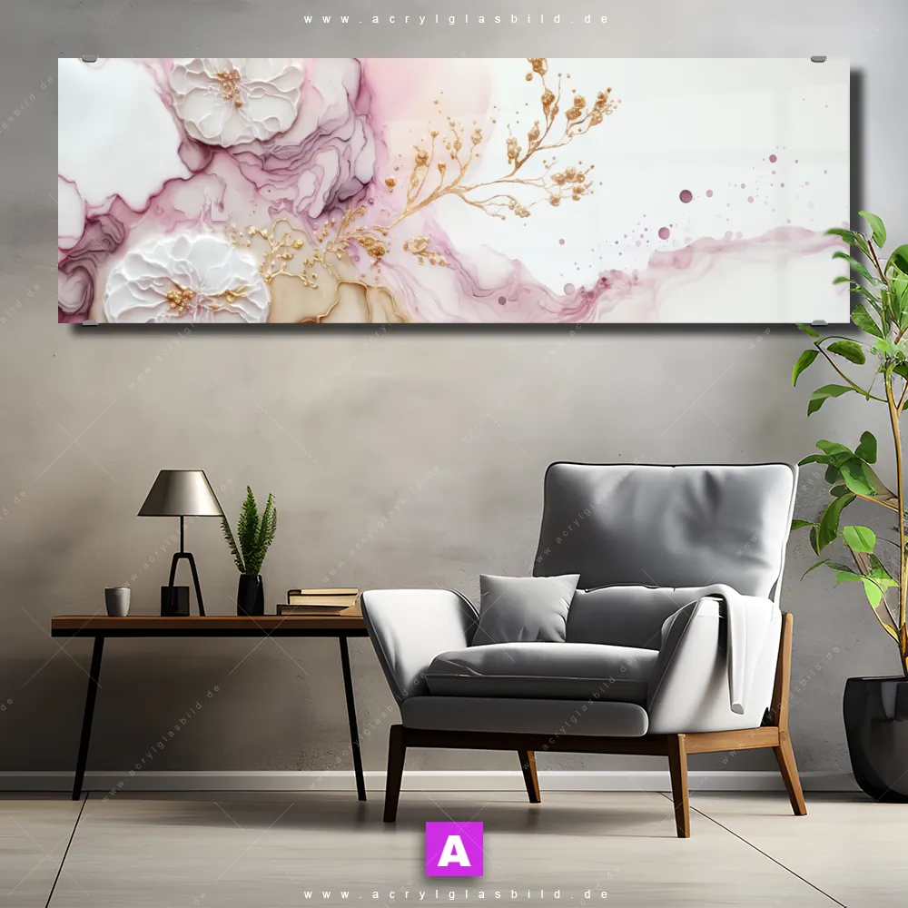 Acrylglasbild | Pastell Blüten Moderne Kunst | Panorama