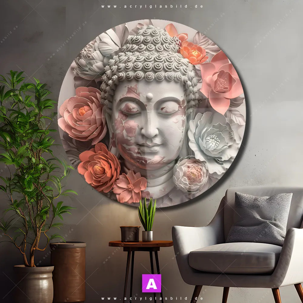 Hey du! Bist du es auch leid, auf langweilige, weiße Wände in deinem Raum zu starren und dich zu fragen, ob das der Sinn des Lebens ist? Unser Acrylglasbild mit dem Titel Pastellblüten und Buddha im Format Rund verwandelt deine Wand in ein Kunstwerk und macht deinen Raum zum absoluten Hingucker.