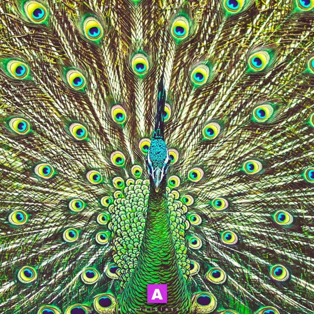 Also, worauf wartest du noch? Verwandle deine tristen Wände in Kinderzimmer, Bar - Gastronomie, Friseur - Beauty, Wohnzimmer - Schlafzimmer in inspirierende Kunstwerke aus der Kategorie Tierwelt und bestelle jetzt das Acrylglasbild Pfauenrad!