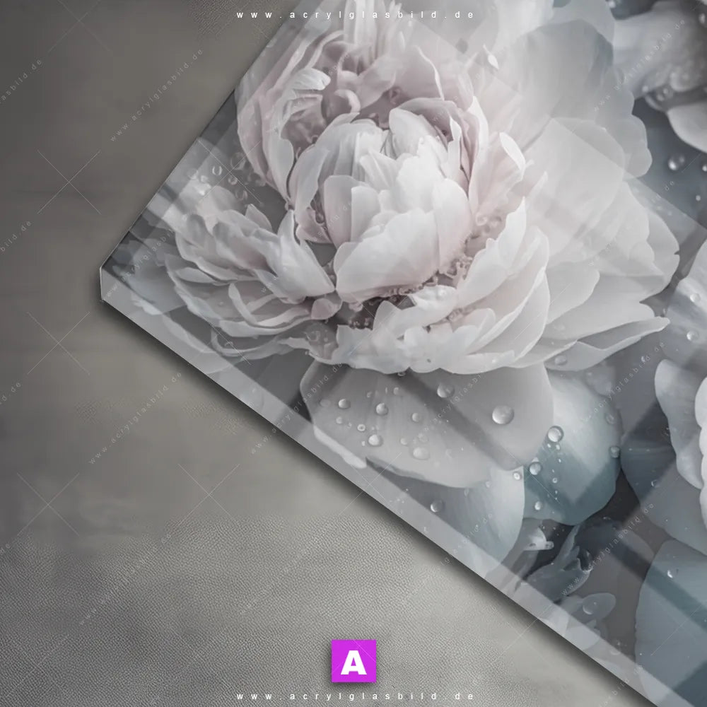 Unser Acrylglasbild Zarte Pfingstrosen aus der Kategorie Blumen - Botanik wird deinem Raum einen Hauch von Luxus verleihen, und du wirst nie wieder von Langeweile geplagt sein. Und wenn du nach einem Bild mit Pfingstrose, Pflanze, Natur, Nahaufnahme, Draufsicht, Wassertropfen, Blüten, Rose suchst, empfehlen wir dir unser Acrylglasbild Rosen in monochromen Stil in den aufregenden Farben Weiss, Rosa, Grau. Mit seiner Gestaltung als Fotografie passt es hervorragend zum Floral, Retro - Vintage, Schwarz - Weiss-Stil.