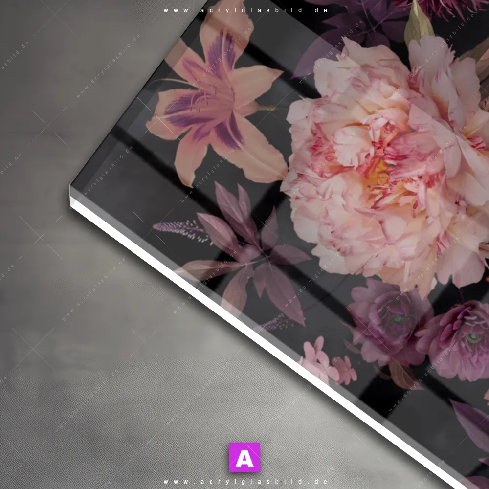 Wenn du auf der Suche nach einem Wandkunstwerk bist, das deine Sinne anregt und deine kreative Seite erweckt, dann ist unser Acrylglasbild Blütenzauber mit Pfingstrosen aus der Kategorie Blumen - Botanik die perfekte Wahl für dich. Entscheide dich für das Acrylglasbild Blumen auf schwarzem Untergrund in den faszinierenden Farben Schwarz, Pink, Rosa, da es ideal zu deinem Einrichtungsstil im Floral, Retro - Vintage-Look passt.