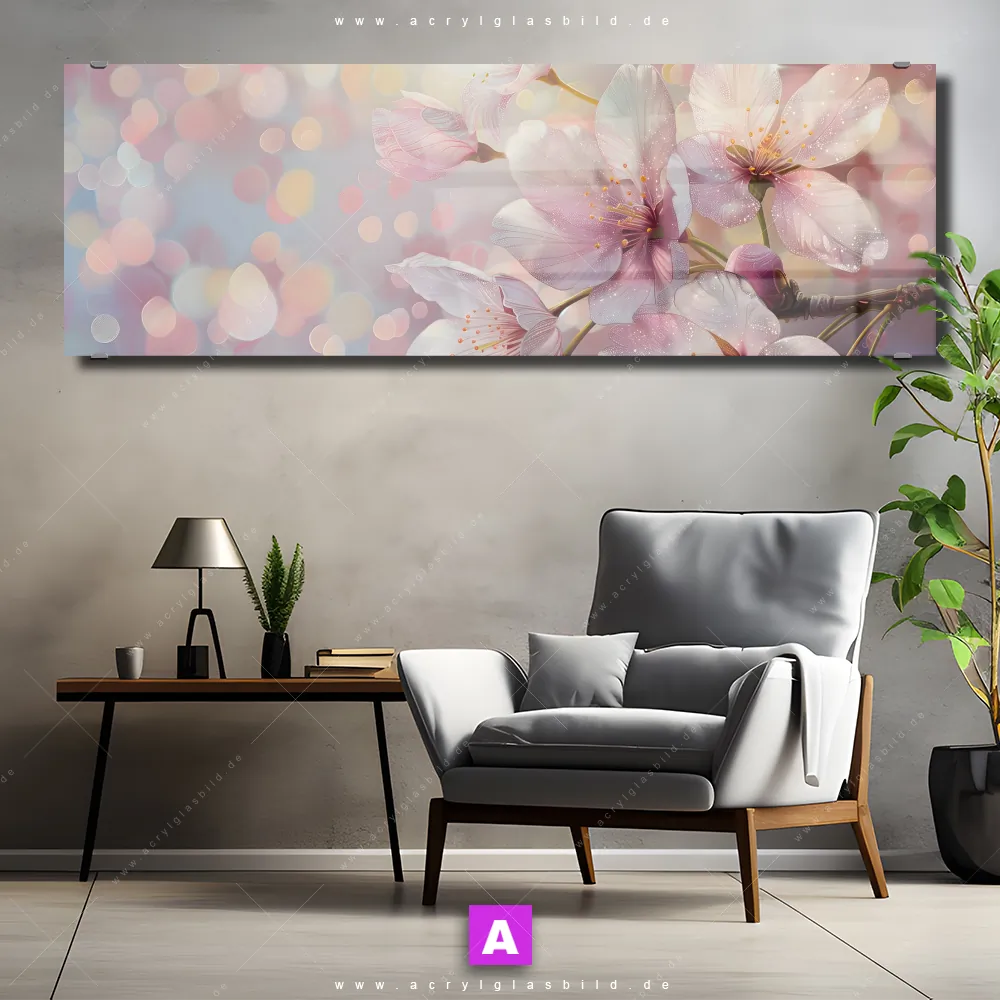 Fehlt dir die Inspiration beim Anblick deiner Wände, sodass selbst das Zählen der Wandfarbtropfen aufregender erscheint? Keine Sorge, wir haben das perfekte Kunstwerk für dich! Mit unserem Acrylglasbild Romantische Kirschblüten im Panorama-Format verleihst du deinem Raum den dringend benötigten Wow-Faktor. Lass deine Wände mit unserem Kirschblüten im Frühling Acrylglasbild zum Star werden!