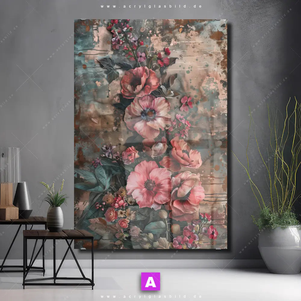 Hallo, auf Wiedersehen langweilige Wände! Gib deinem Raum ein stilvolles Upgrade mit unserem Acrylglasbild Romantische Vintageblumen im Hochformat, das nicht nur Flur - Eingangsbereich, Wohnzimmer - Schlafzimmer, Arzt - Praxis, sondern auch jeden anderen Raum im Handumdrehen auf ein neues Niveau hebt!