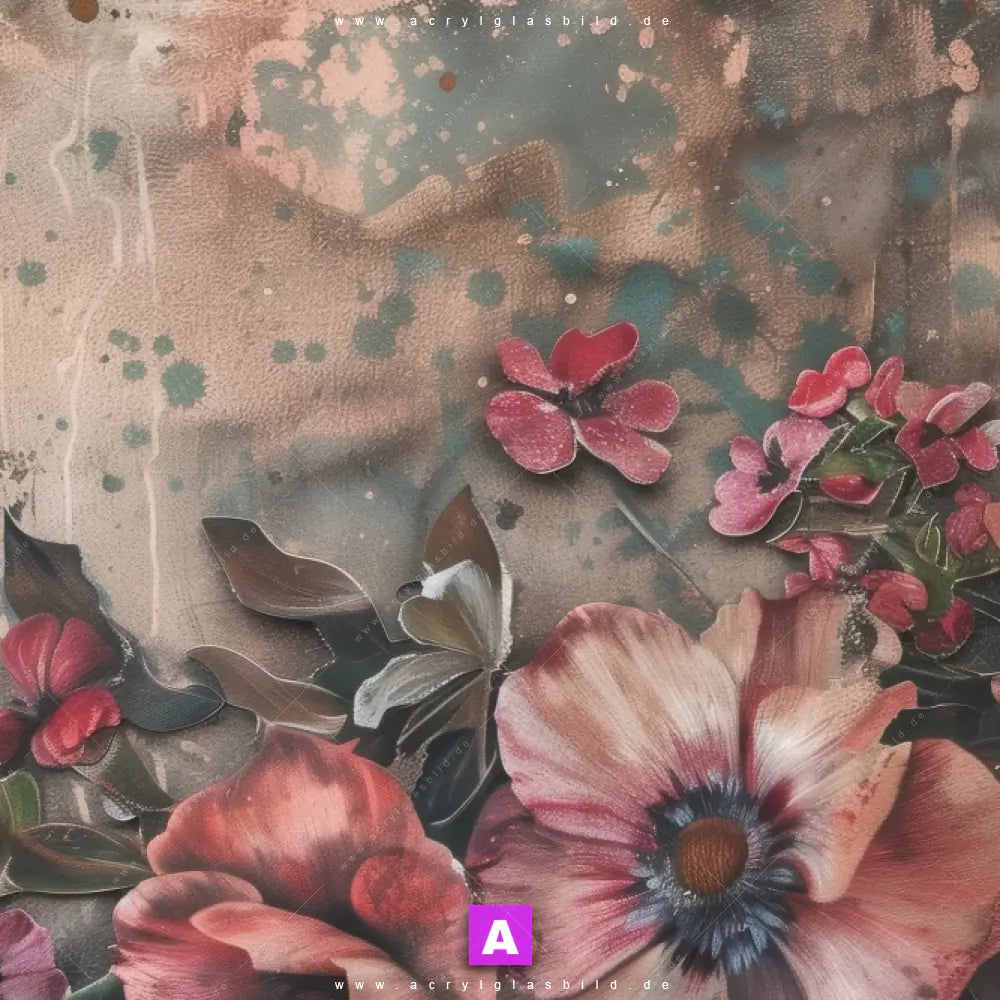 Das Motiv Romantische Vintageblumen wird im UV-Direktdruck in den Farben Rosa, Rot, Grün, Braun auf die Rückseite einer 5mm starken, transparenten Acrylglasplatte gedruckt. Das durchscheinende Motiv Retro Natur trifft Kunst im Floral, Retro - Vintage, Grunge Stil wird anschließend vollflächig mit einer weißen Schicht hinterlegt. Das Blumen - Botanik Acrylglasbild | Hochformat erhält so eine bemerkenswerte Farbbrillanz, hohe Schärfe und erstaunliche Tiefenwirkung.