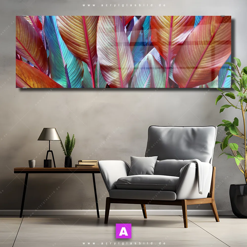 Fehlt dir die Inspiration beim Anblick deiner Wände, sodass selbst das Zählen der Wandfarbtropfen aufregender erscheint? Keine Sorge, wir haben das perfekte Kunstwerk für dich! Mit unserem Acrylglasbild Rote und smaragdgrüne Blätter im Panorama-Format verleihst du deinem Raum den dringend benötigten Wow-Faktor. Lass deine Wände mit unserem Pflanzenblätter in rot und blau-grün Acrylglasbild zum Star werden!