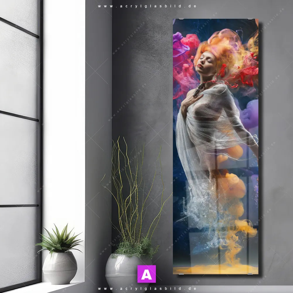 Vergiss also langweilige weiße Wände und entscheide dich für das Acrylglasbild Farbenspiel um Frau, gestaltet als Fotografie, Digitale Kunst, das deinem Raum Charakter verleiht und dich jeden Tag aufs Neue inspiriert. Mit diesem Porträts - Menschen Acrylglasbild wird deine Wand zur Kunst und du zum Kunstliebhaber.