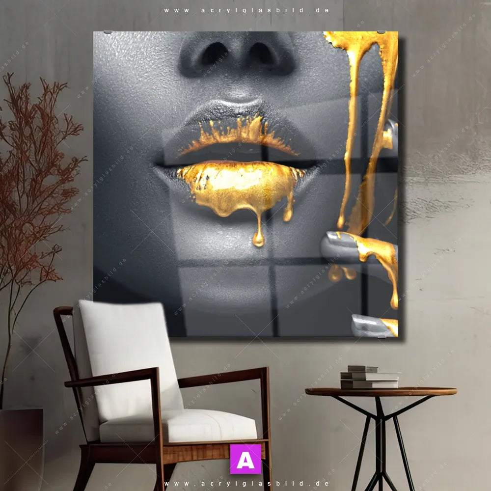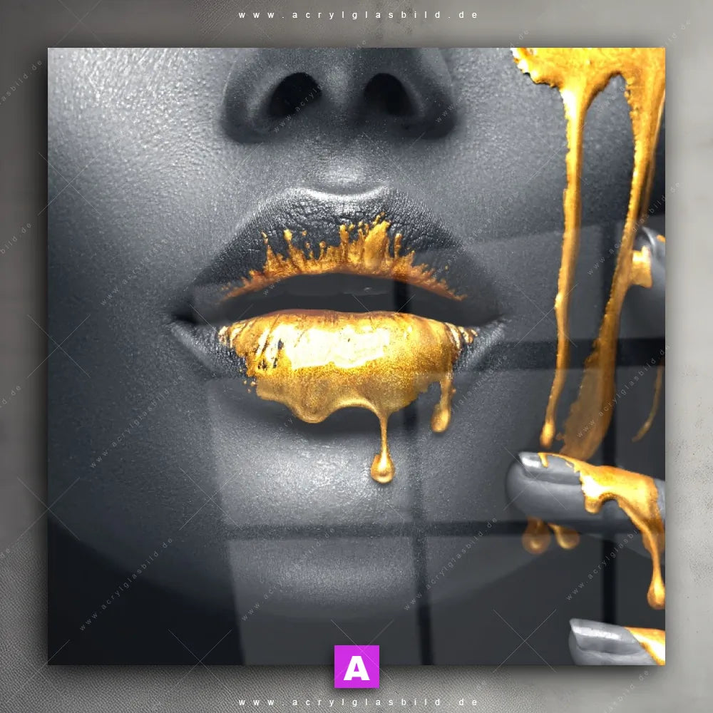 Mit unserem Acrylglasbild Gesicht einer Frau in Silber & Gold aus der Kategorie Porträts - Menschen wirst du nie wieder auf deinem Sofa vor Langeweile versinken. Und wenn du ein Wandbild mit Frau, Lippen, Mund, Porträt, Erotik, modern, Gold, Silber, Farbe, Beauty suchst, empfehlen wir dir unser Acrylglasbild Goldener Farbfluss über silbernes Gesicht in den faszinierenden Farben Gold, Silber, Schwarz. Es wurde in der Form eines Fotografie gestaltet und harmoniert hervorragend mit deinem bevorzugten Modern Art Stil.