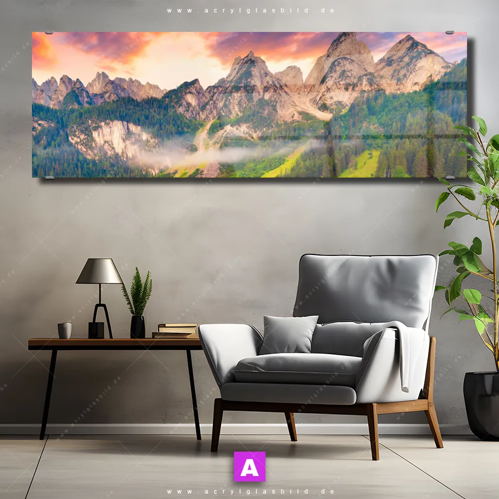Fehlt dir die Inspiration beim Anblick deiner Wände, sodass selbst das Zählen der Wandfarbtropfen aufregender erscheint? Keine Sorge, wir haben das perfekte Kunstwerk für dich! Mit unserem Acrylglasbild Sonnenaufgang am Bergsee im Panorama-Format verleihst du deinem Raum den dringend benötigten Wow-Faktor. Lass deine Wände mit unserem See in wolkigen Bergen Acrylglasbild zum Star werden!