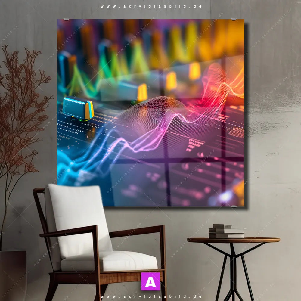 <b>Produktart:</b> Acrylglasbild | Glasbild | Wandbild aus Kunstglas | <b> Motiv:</b> Sound Wave | <b> Bildausrichtung:</b> Quadrat | <b> Max. Motiv-Größe:</b> 400cm breit | 300cm hoch | <b> Verfügbare Formate: </b> Quadrat, Querformat, Hochformat, Panorama, Schmal, Rund | <b> Kategorie:</b> Muster - Texturen, Sport - Freizeit | <b> Farben:</b> Bunt | <b> Kunstformen:</b> Fotografie, Digitale Kunst | <b> Kunststile:</b> Mixed Media, Pop Art, Modern Art