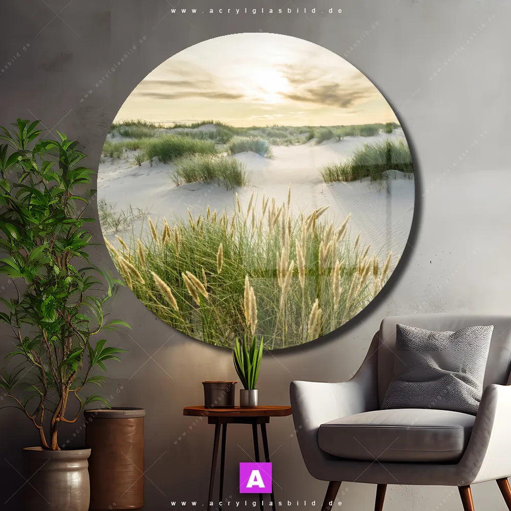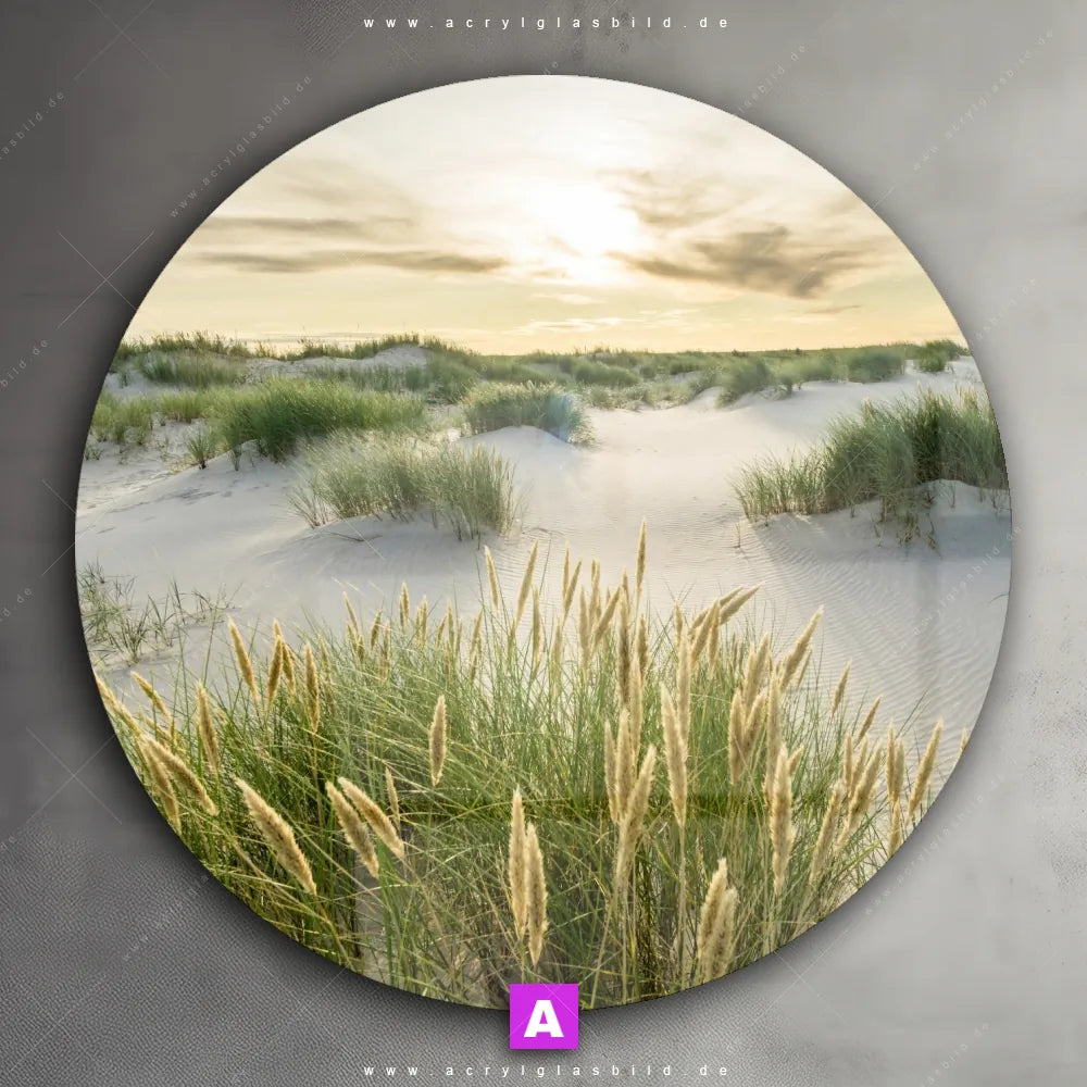 Hey du! Bist du es auch leid, auf langweilige, weiße Wände in deinem Raum zu starren und dich zu fragen, ob das der Sinn des Lebens ist? Unser Acrylglasbild mit dem Titel Strand mit Sanddünen im Format Rund verwandelt deine Wand in ein Kunstwerk und macht deinen Raum zum absoluten Hingucker.