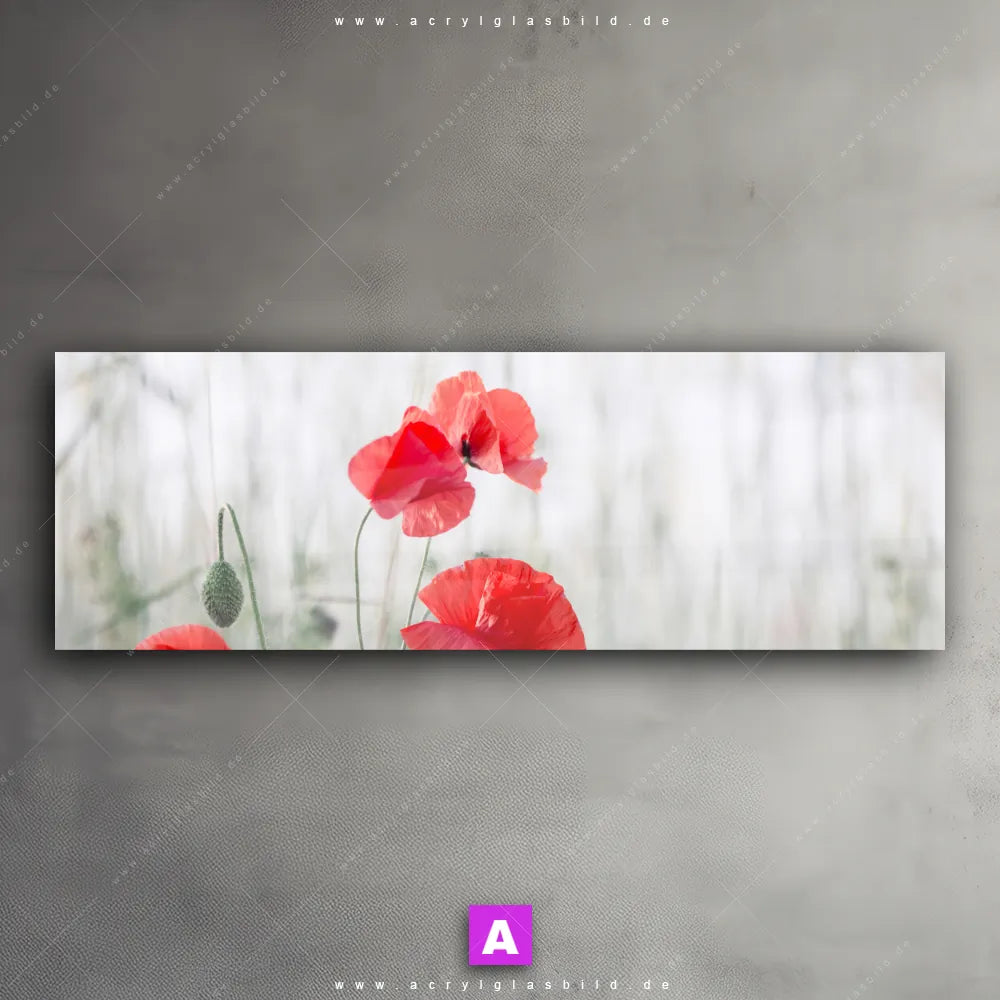 <b>Produktart:</b> Acrylglasbild | Glasbild | Wandbild aus Kunstglas | <b> Motiv:</b> Vintage Klatschmohn | <b> Bildausrichtung:</b> Panorama | <b> Max. Motiv-Größe:</b> 450cm breit | 300cm hoch | <b> Verfügbare Formate: </b> Quadrat, Querformat, Hochformat, Panorama, Schmal, Rund | <b> Kategorie:</b> Blumen - Botanik | <b> Farben:</b> Grün, Rot, Weiss, Grau , Hellgrün | <b> Kunstformen:</b> Fotografie | <b> Kunststile:</b> Floral, Natürlich - Realistisch