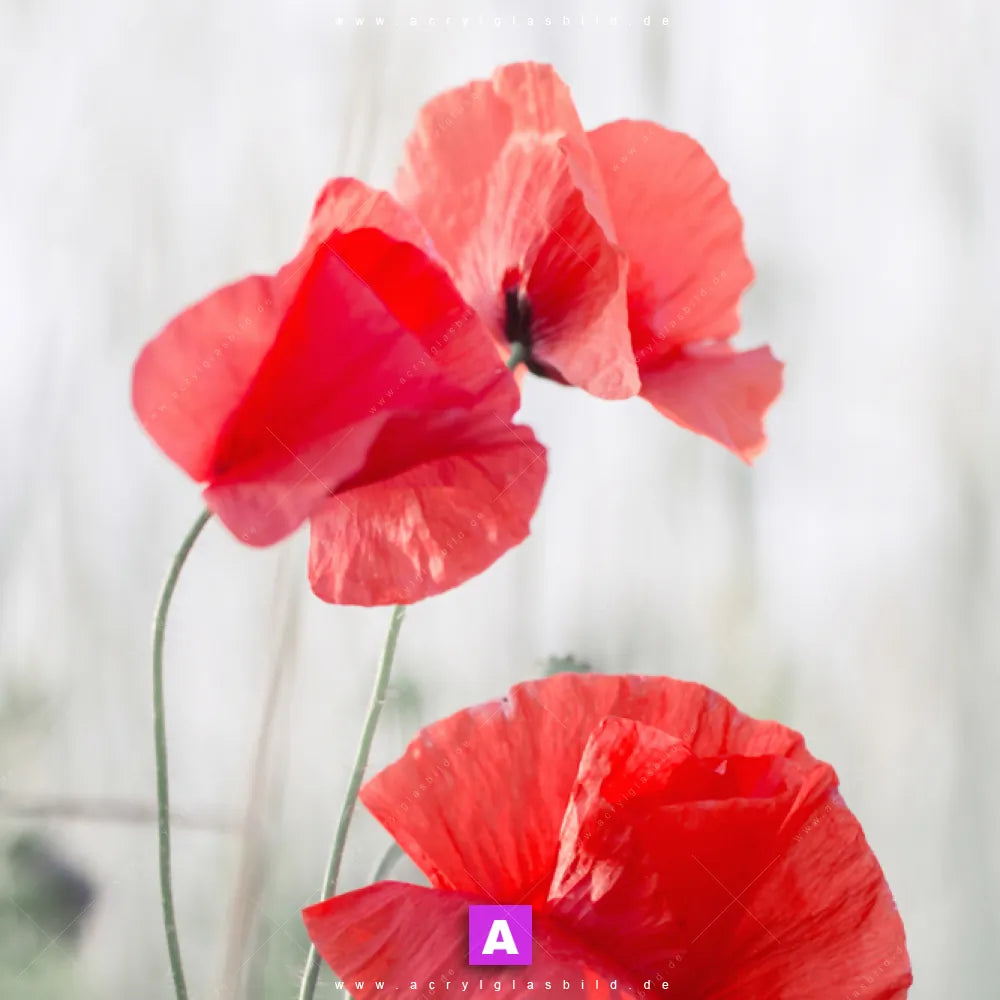 Also, worauf wartest du noch? Verwandle deine tristen Wände in Arzt - Praxis, Büro - Kanzlei, Wohnzimmer - Schlafzimmer, Flur - Eingangsbereich in inspirierende Kunstwerke aus der Kategorie Blumen - Botanik und bestelle jetzt das Acrylglasbild Rote retro Mohnblumen!