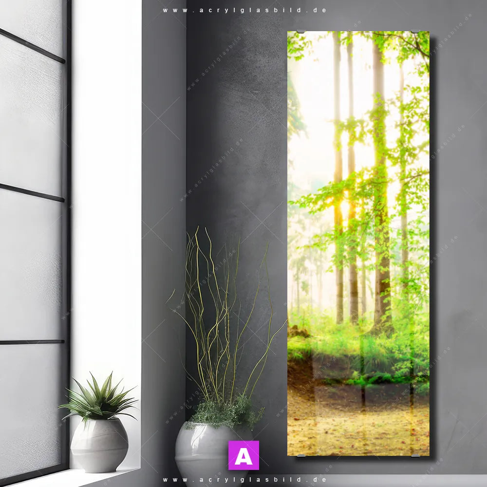 <b>Produktart:</b> Acrylglasbild | Glasbild | Wandbild aus Kunstglas | <b> Motiv:</b> Waldpanorama | <b> Bildausrichtung:</b> Schmal | <b> Max. Motiv-Größe:</b> 720cm breit | 720cm hoch | <b> Verfügbare Formate: </b> Quadrat, Querformat, Hochformat, Panorama, Schmal, Rund | <b> Kategorie:</b>  Landschaften, Wald - Bäume | <b> Farben:</b>  Hellgrün, Grün, Braun | <b> Kunstformen:</b>  Fotografie | <b> Kunststile:</b>  Natürlich - Realistisch