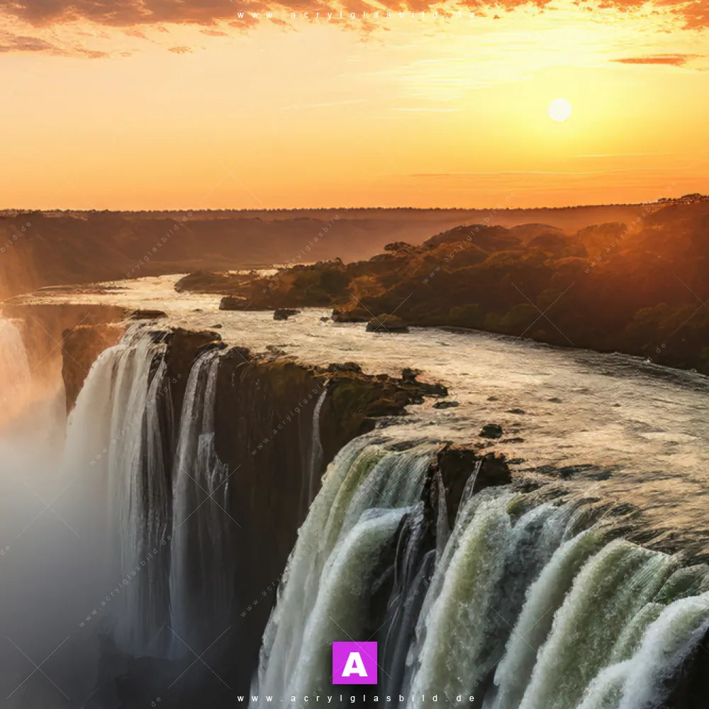 <b>Produktart:</b> Acrylglasbild | Glasbild | Wandbild aus Kunstglas | <b> Motiv:</b> Wasserfall bei Abendsonne | <b> Bildausrichtung:</b> Querformat | <b> Max. Motiv-Größe:</b> 450cm breit | 300cm hoch | <b> Verfügbare Formate: </b> Quadrat, Querformat, Hochformat, Panorama, Schmal, Rund | <b> Kategorie:</b> Landschaften | <b> Farben:</b> Orange, Braun, Grün | <b> Kunstformen:</b> Fotografie | <b> Kunststile:</b> Natürlich - Realistisch