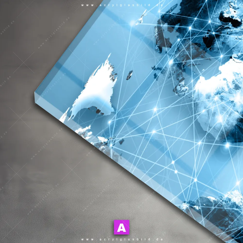 Also, worauf wartest du noch? Verwandle deine schlichten Wände in inspirierende Kunstwerke und bestelle jetzt das Acrylglasbild Karte der Welt mit digitalen Verbindungen!