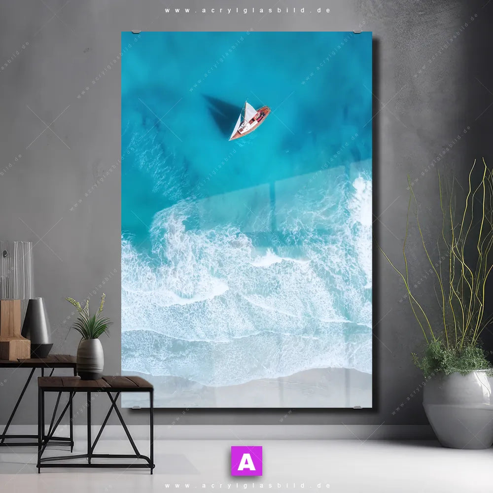 Hallo, auf Wiedersehen langweilige Wände! Gib deinem Raum ein stilvolles Upgrade mit unserem Acrylglasbild Yacht im Meer im Hochformat, das nicht nur Arzt - Praxis, Badezimmer, Büro - Kanzlei, Flur - Eingangsbereich, Wohnzimmer - Schlafzimmer, sondern auch jeden anderen Raum im Handumdrehen auf ein neues Niveau hebt!