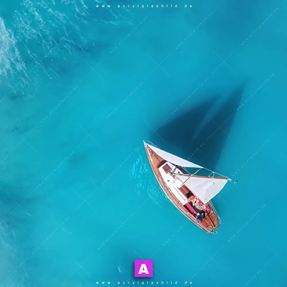 <b>Produktart:</b> Acrylglasbild | Glasbild | Wandbild aus Kunstglas | <b> Motiv:</b> Yacht im Meer | <b> Bildausrichtung:</b> Hochformat | <b> Max. Motiv-Größe:</b> 190cm breit | 100cm hoch | <b> Verfügbare Formate: </b> Quadrat, Querformat, Hochformat, Panorama, Schmal, Rund | <b> Kategorie:</b> Strand - Meer | <b> Farben:</b> Türkis, Blau, Beige, Weiss | <b> Kunstformen:</b> Fotografie | <b> Kunststile:</b> Modern Art