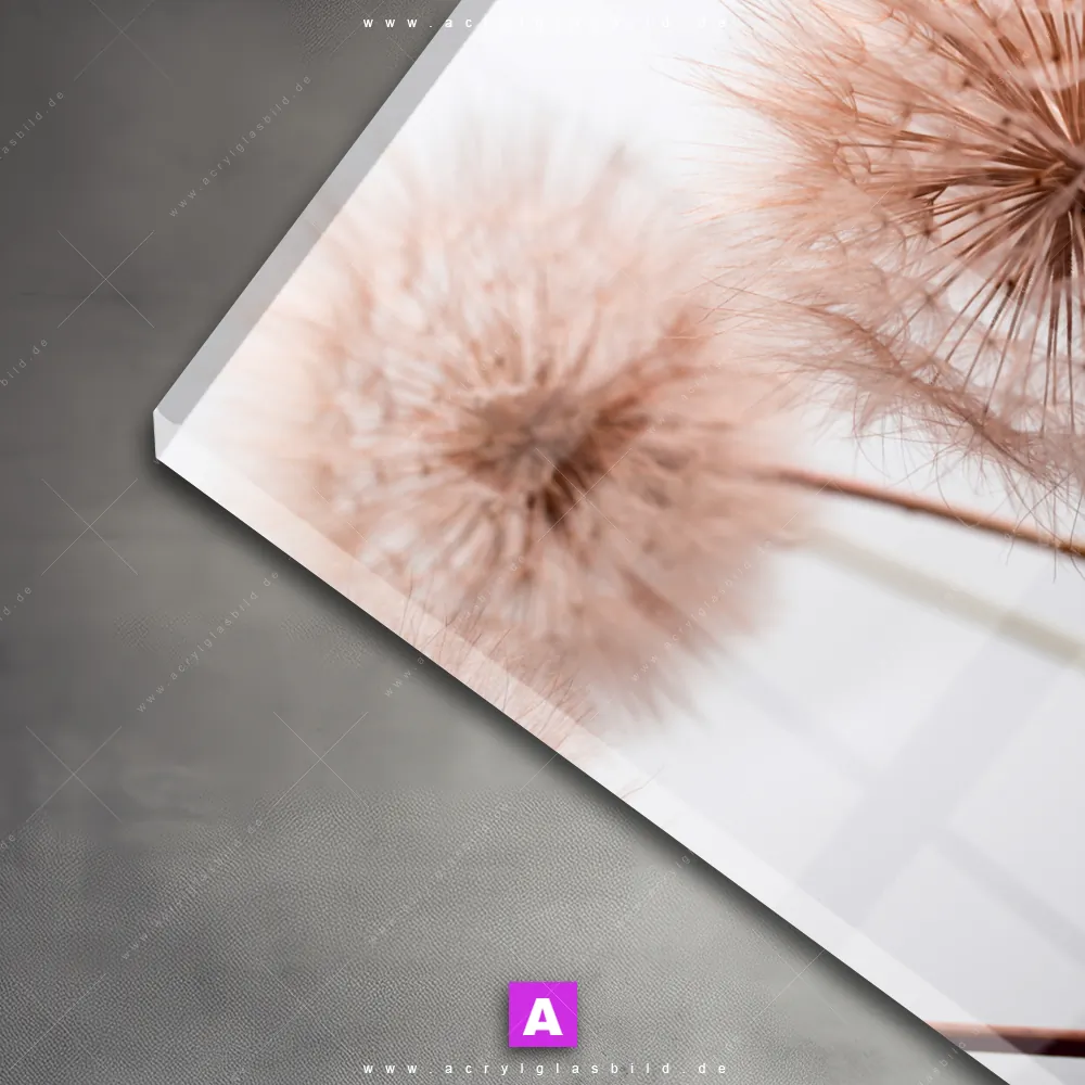 <b>Produktart:</b> Acrylglasbild | Glasbild | Wandbild aus Kunstglas | <b> Motiv:</b> Zarte Pusteblume | <b> Bildausrichtung:</b> Quadrat | <b> Max. Motiv-Größe:</b> 450cm breit | 300cm hoch | <b> Verfügbare Formate: </b> Quadrat, Querformat, Hochformat, Panorama, Schmal, Rund | <b> Kategorie:</b>  Blumen - Botanik | <b> Farben:</b>  Beige, Weiss, Rosa | <b> Kunstformen:</b>  Fotografie | <b> Kunststile:</b>  Minimalistisch, Retro - Vintage