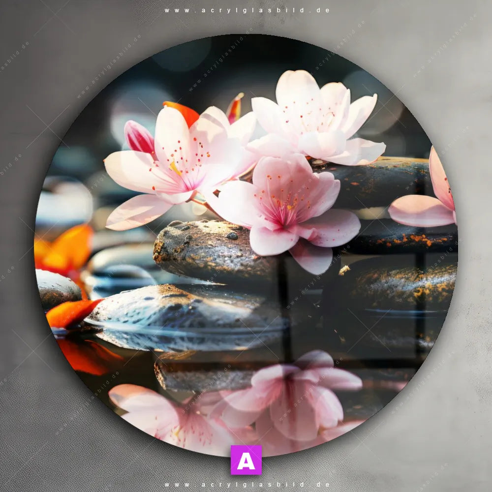 Acrylglasbild | Zen Steine mit Blumen | Rund