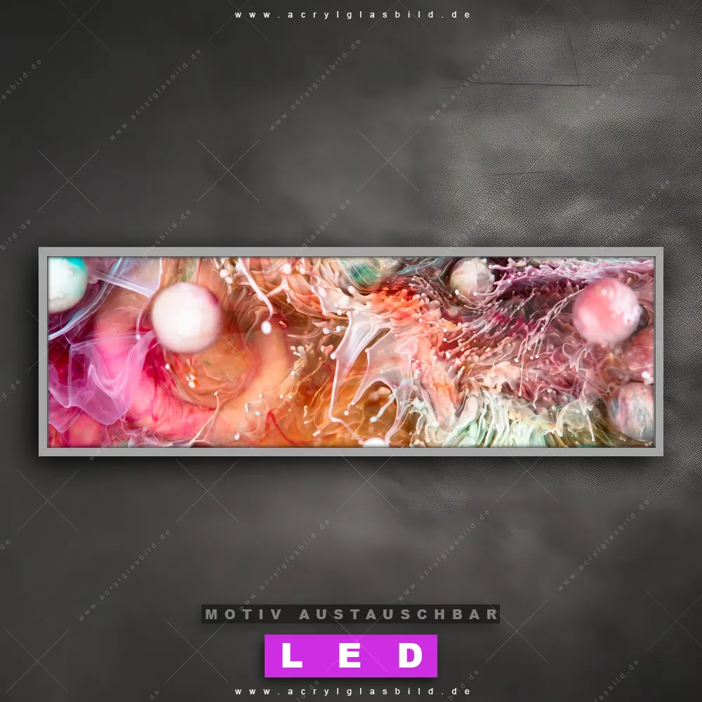 Wer will schon dunkle, triste Wände? Mit unserem LED Acrylglasbild Canvalight® DIA Abstrakte Farbspritzer und seiner fantastischen LED-Ausleuchtung werden deine Wände in Arzt - Praxis, Büro - Kanzlei, Wohnzimmer - Schlafzimmer, Bar - Gastronomie, Friseur - Beauty zu echten Hinguckern. Wenn du auf der Suche nach einem beleuchteten Wandbild aus Acrylglas mit Flüssigkeit, Acryl, flüssig, Farbe, Marmorierung, Tinte, Alkohol, Fluid Art bist, dann solltest du unser LED Leuchhtbild Farbvielfalt mit den beeindruckenden Motiv-Farben Orange, Pink, Rosa, Türkis, Weiss nicht verpassen. Gestaltet im angesagten Abstrakt, Modern Art Stil, passt das LED Bild mit DIA-Klapprahmen und wechselbarer Acrylglas-Scheibe perfekt zu jedem Einrichtungsstil – selbst in deinem kleinen Dschungel aus Kreativität und Chaos!