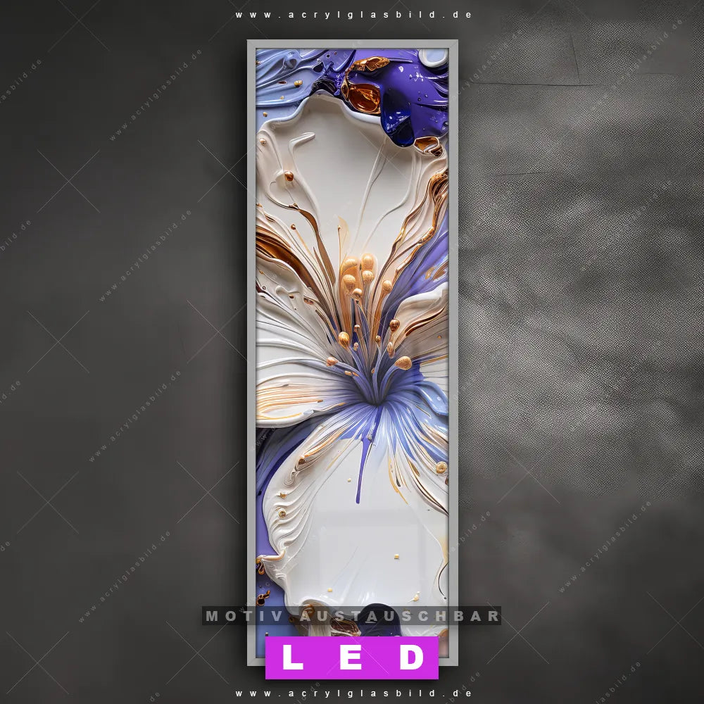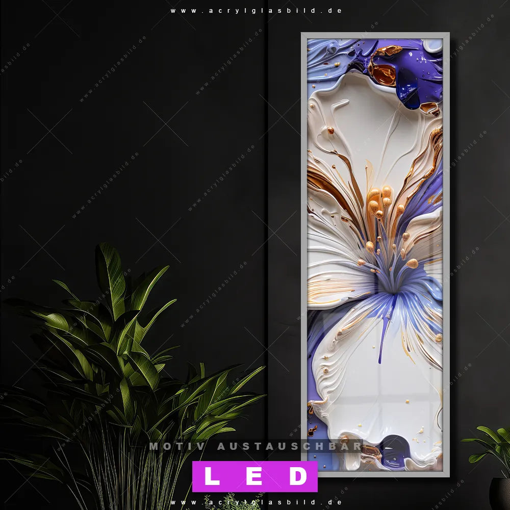 Vergiss dunkle Ecken und langweilige Wände in Wohnzimmer - Schlafzimmer, Bar - Gastronomie, Friseur - Beauty! Mit unserem LED Acrylglasbild Canvalight® DIA Floraler Blütenzauber wirst du nie wieder im Dunkeln tappen. Suchst du nach einem beleuchteten Wandbild mit Blume, Pastell, Kunst? Dann ist unser Leuchtbild Künstlerische Blüten mit den strahlenden Motiv-Farben Weiss, Gold, Orange, Lila genau das richtige LED Bild für dich. Egal, ob dein Stil minimalistisch oder exotisch ist, dieses LED Leuchtbild im Abstrakt, Modern Art, Floral Stil mit DIA-Klapprahmen und glänzender Front aus Acrylglas passt perfekt zu jeder Einrichtung.