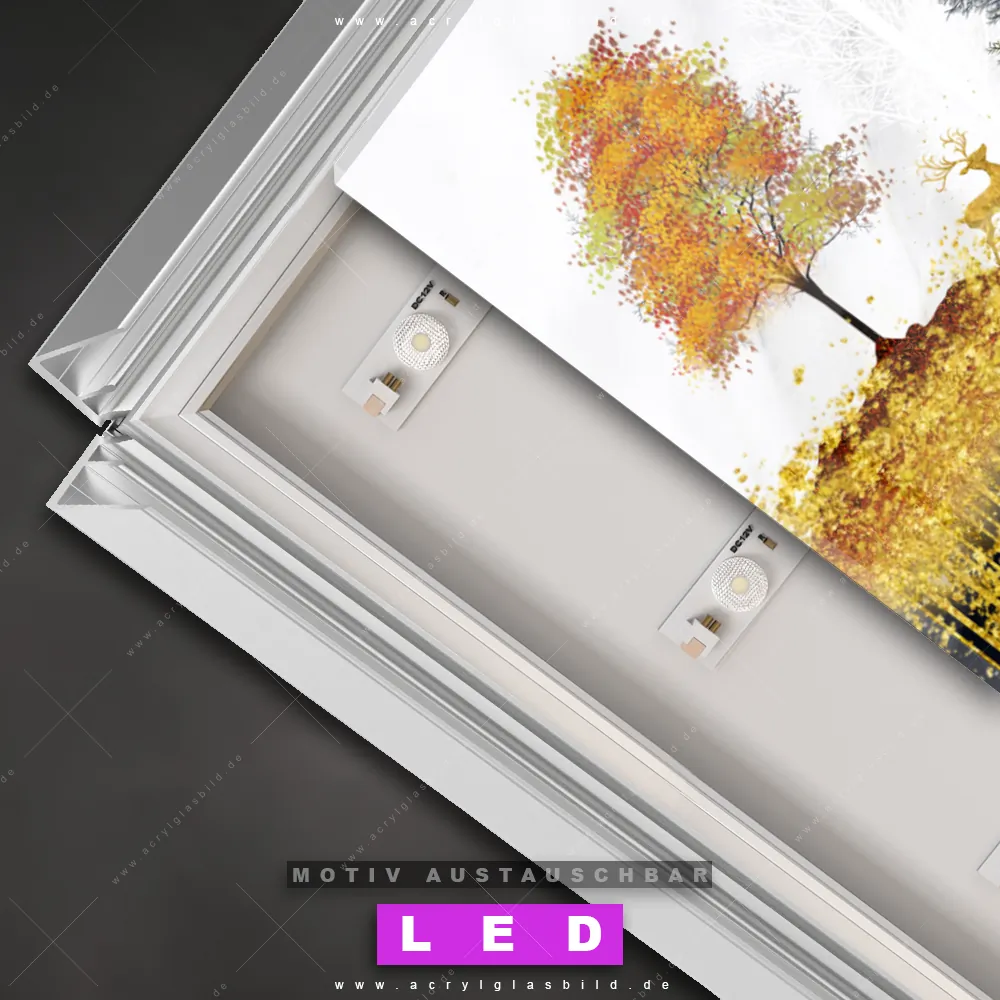 Na, worauf wartest du noch? Mach deine Wände zum Star der Show und bestelle jetzt das Canvalight® DIA LED Acrylglasbild Hirsche in Gold im Wald. Deine Wände werden es dir danken und deine Freunde werden dank der wechselbaren Motive vor Neid platzen!